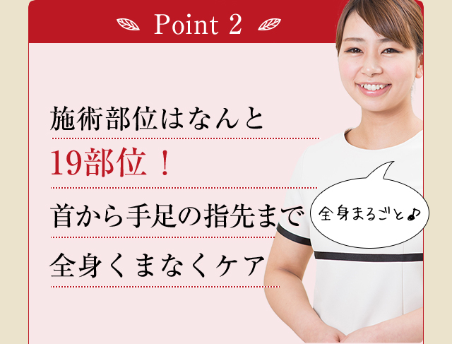 お腹・脚・ヒップ・二の腕・背中まで全身うけられます。