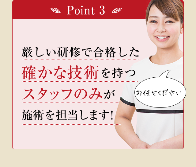 生理中の場合も出血量が多くなったり、いつもより効果が出にくくなる事がございますので、できるだけ避けていただく事をおすすめいたします。